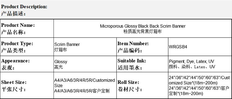 粉质高光背黑灯箱布 Microporous Glossy Black Back Scrim Banner