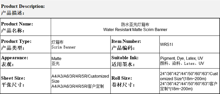 防水亚光灯箱布 Water Resistant Matte Scrim Banner