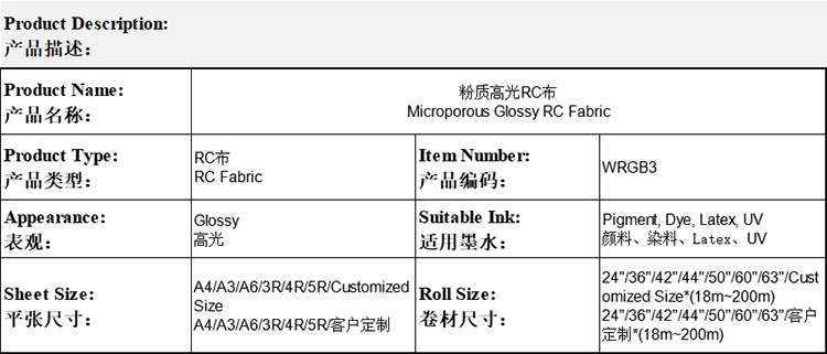 粉质高光RC布 Microporous Glossy RC Fabric